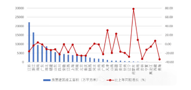 圖 9 2025 年上半年各地區(qū)建筑業(yè)企業(yè)房屋竣工面積及其增長(zhǎng)情況